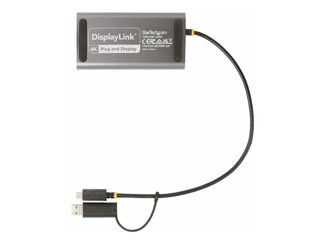 StarTech.com USB-C to Dual-HDMI Adapter, USB-C or A to 2x HDMI, 4K 60Hz, 100W PD Pass-Through, 1ft (30cm) Built-in Cable, External Video Graphics Adapter - USB to HDMI Multi-Monitor Converter for Laptop (109B-USBC-HDMI) - Videokort - TAA-kompatibel - USB typ A, USB-C hane till 2 x 19 pin HDMI Type A, USB-C hona - 30 cm - grå - stöd för 4K, aktiv