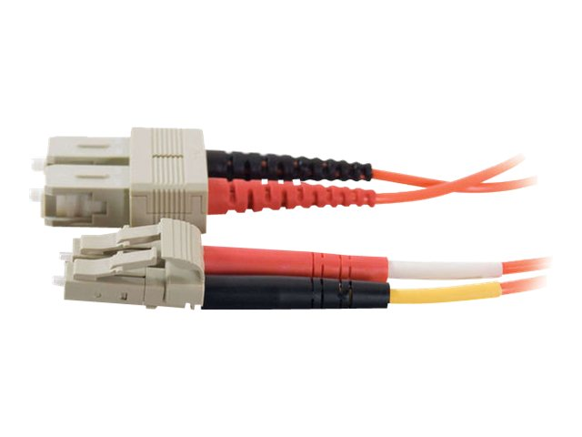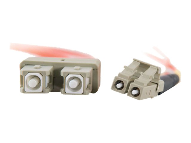 With LC to SC termination, this high-quality fiber optic patch cable is specifically designed for fast ethernet, ATM and gigabit ethernet applications. The small LC connectors satisfy the need for higher port density both in the telecom room and the work area, and offer twice the port density of traditional SC and ST fiber connectors. The LC connector with its RJ-style latch clip design is easy to engage and disengage, and gives each connection greater durability in resisting pulls, strains, snags, and impacts during cabling installs and maintenance. The ST connector features a bayonet locking system.