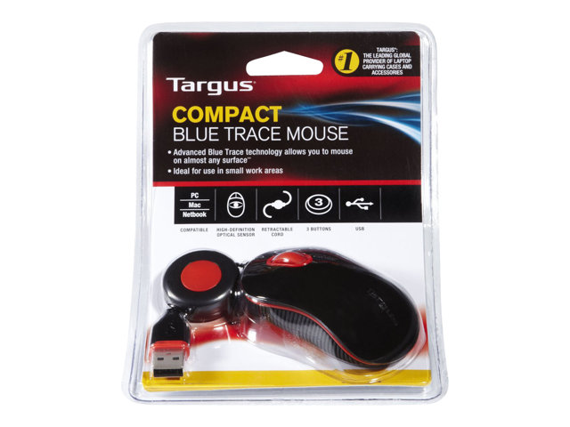 The Targus Compact BlueTrace Mouse with a stylish and contemporary design is the perfect solution for travelers who need to save space when using an external mouse. The integrated scroll button allows you to scroll up or down through spreadsheets or browse the internet. The Blue Trace technology combines the power of an optical mouse with the precision of a laser mouse for remarkable tracking on almost any surface.