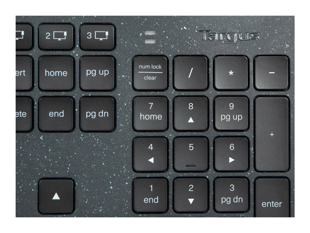 Targus EcoSmart - Tangentbord - hållbar energiutvinning - antimikrobiell - bakgrundsbelyst - trådlös - Bluetooth 5.0 - QWERTY - tysk - tangentbrytare: Saxnyckel - svart - recycled packaging