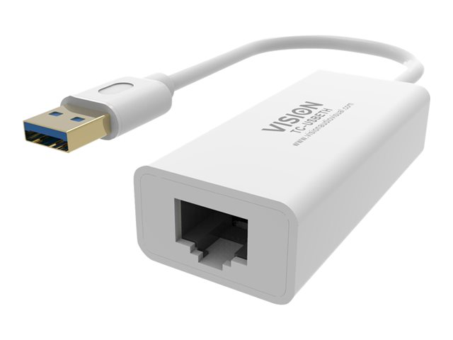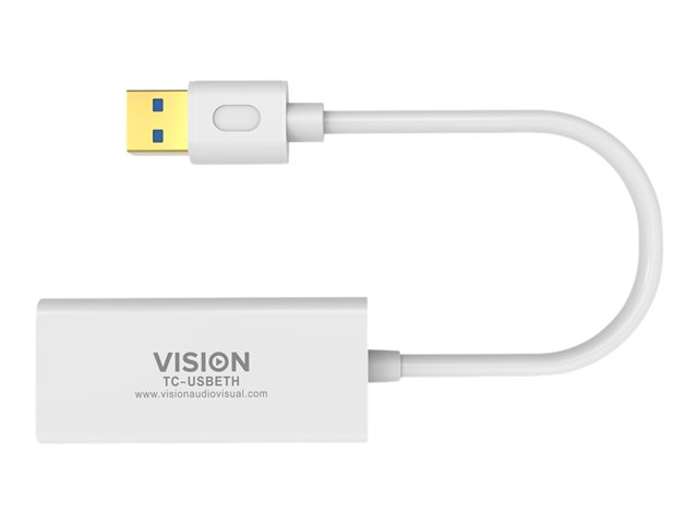 Vision TC-USBETH - Nätverksadapter - USB 3.0 - Gigabit Ethernet x 1 - vit TC-USBETH